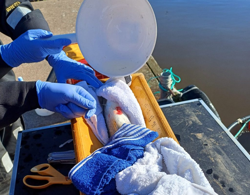 Asentamalla radiolähetin siian vatsaonteloon tutkitaan LUKE:n toimesta Kokemäenjoen vaellussiian kutualueita. Olen pyydystänyt 49 siikaa, joihin lähetin asennettiin ja siiat vapautettiin jatkamaan kutualueille hakeutumista. Tarkoituksena on kartoittaa mitä alueita kalat käyttävät, kun kutevat. Harjavallan padon alapuolen Lammaistenlahti tunnetaan kutualueena, mutta todennäköistä on, että kutua tapahtuu muuallakin. Joen edustalla ja joessa on vastaanottimia, jotka rekisteröivät, kun lähetinsiika ui vastaanottimen ohi. Toiveena on, että mikäli joku kalastaja saa lähettimellä varustetun siian hän vapauttaisi siian tai jos ottaa lähetinkalan saaliiksi palauttaisi vatsaontelossa sijaitsevan lähettimen LUKE:lle niin se voidaan käyttää uudelleen
