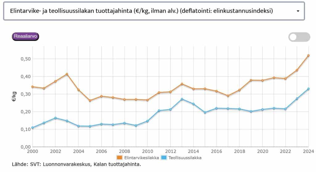- Teollisuussilakka 0,33 €/kg (+22 %)